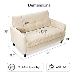 - WEUP 50" Loveseat Sofa Small Couch for Living Room, Bedroom, Office, Beige Corduroy Comfy Love Seat with Spring Cushion, Solid Wood Frame, Tool-Free Assembly, Beige Corduroy