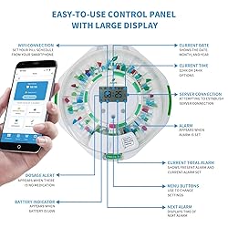 【WiFi-Enabled Smart Pill Organizer】Connects easily to 2.4GHz & 5GHz WiFi and pairs with the free SmartLife App (iOS & Android). Set up to 9 daily customizable audio/visual reminders, manage up to 28-day medication cycles, and dispense medications, vitamins, and supplements with ease — all with no monthly fees. 【Smart App Monitoring & Remote Control】Through the stable SmartLife App, users can adjust schedules, set reminders, receive real-time notifications, and view adherence records anytime. Family members or caregivers can remotely check dispensing activity and send reminder prompts, supporting consistent daily routines and added peace of mind. 【Secure, Accessible & Senior-Friendly Design】Features a large, high-contrast LCD screen displaying time, alarms, and WiFi status for clear visibility. The built-in magnifier helps users easily read dosage labels. The smooth sliding retrieval window is designed for seniors or individuals with limited hand mobility. Includes a locking cover with 2 keys to help prevent access by children, pets, or visitors. 【Reliable Support for Independent Living】Ideal for users who want help staying on schedule with daily medication routines. The SmartLife App allows caregivers and family members to check whether doses were taken and receive optional notifications — offering reassurance while promoting independence for loved ones. 【High Capacity & Flexible Scheduling Options】Equipped with 28 compartments holding up to 672 aspirin-sized pills (about 30% more capacity than standard dispensers). Includes 9 interchangeable dosing rings for various cycle and reminder configurations. The transparent lid allows quick visual checks while helping protect contents from dust and humidity. 【Simple Setup & Backup Protection】Quick plug-and-play installation with intuitive app pairing. Includes a 4-hour battery backup, ensuring uninterrupted operation during short power outages or travel. Designed for reliable performance, ease of use, and long-term durability.