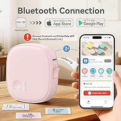 - New Version Mini Portable Bluetooth Label MakersExperience effortless and smart label printing with our all-in-one mini label maker — designed for home, office, and creative projects. Compact yet powerful, it combines convenience, portability, and advanced features to make every task easier.✅ Inkless Printing – Say goodbye to messy ink cartridges. Enjoy clean, cost-effective, and maintenance-free thermal printing every time.✅ Built-in Cutter – Equipped with a sharp built-in blade for smooth, even cuts — no scissors needed!✅ Automatic Label Alignment – Ensures precise label placement and prevents paper jams for a hassle-free experience.✅ Large-Capacity Rechargeable Battery – Long-lasting power lets you print anytime, anywhere without frequent recharging.✅ Bluetooth Connectivity – Quickly connect to your smartphone with stable Bluetooth technology and print in seconds.✅ Lightweight & Portable – Pocket-sized and easy to carry, perfect for use at home, school, office, or on the go.✅ Self-Developed APP – No registration required and absolutely ad-free. Enjoy a smooth, intuitive design experience with a wide range of creative templates.✅ Rich Templates & Custom Design – Choose from numerous label styles or create your own for any occasion — from organizing to journaling.How to Connect?1. Download the App "PrinterMate" from the Apple Store/Google Play, and meets with applicable data compliance laws.2. Connect the Bluetooth via the "PrinterMate" App, not on the phone system.3. Before printing, please select the appropriate size for the printing paper on the "PrinterMate" App.