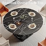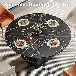 - Round Dining Table for 4–6 People: With dimensions of 47.24"D x 47.24"W x 29.53"H, this black faux marble round dining table comfortably accommodates 4 to 6 people, making it a perfect fit for family meals, casual kitchen get-togethers, or dining areas in modern apartments. For breakfast, dinner, or hosting small groups, this round dinner table provides enough space for every use. Pedestal and Elegant Round Dining Table with Enclosed Storage: This pedestal black round dining room table has a stylish base and an enclosed 2-tier cabinet below, fitted with two sleek acrylic doors. Inside the cabinet, an adjustable shelf (3 height options) organizes dining essentials, plus built-in racks keep wine glasses neat—great for dining rooms or kitchens. It keeps daily dining items within reach while keeping your space tidy. Multi-Functional Round Dining Table with Fridge Storage Space (Fridge Not Included): The black faux marble dinner table base features storage shelves, complete with dual glass holders and a removable, adjustable middle shelf. Need extra space? Simply remove the shelf to fit a mini-fridge; it’s specifically designed for wine coolers with dimensions up to 20.47"W x 20.47"D x 27.5"H, offering flexible extra room. It’s perfect for organizing wine bottles, fine dinnerware, or decorative items. Plus, four built-in cable management holes keep cords tidy and safe, making this black faux marble round kitchen dining table an excellent space-saving choice for modern homes with limited space. Two-Pieces Faux Marble Tabletop & Sturdy Construction: The tabletop is crafted from two engineered wood panels (0.59” thick) with a premium black faux marble finish, delivering both style and durability. The 47-inch black faux marble round dining table maintains long-term sturdiness. With a solid base and premium materials, it’s ideal as a small kitchen table or a stylish centerpiece for dining rooms and apartments. Quick & Easy Assembly: This 47-inch round dining room table for 4–6 people come with labeled parts, included tools, and step-by-step instructions, assembly is quick and easy, making it an excellent addition to your home. In rare cases of missing or damaged components, replacement parts can be arranged.