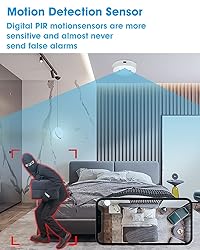 HD Security Camera: The 1080P clear real-time screen and wireless mini camera with 4 infrared lights greatly improve night vision. Even in a dark environment, you will be able to see details and protect your children, family and your personal property.This WiFi camera shape as smoke detector but no smoke detected function. Motion Sensing & Alert Push-After recognizing the motion, the camera will send a push notification with the image to your phone. You can log into the app to see what's going on. The camera automatically saves and overwrites the oldest SD card files to continue working when it is full. Two ways to connect: 1. AP mode does not require WiFi: You can connect your device to the camera's own signal to watch real-time viewing of the live scene (the device and camera need to be kept within 49.2ft). 2.P2P Mode requires 2.4GHz WiFi: By following the instructions to connect to the internet using the P2P method, you can remotely real-time monitor the scenes from anywhere in the world (make sure the cameras and WiFi signal maintain sufficient signal distance). Continuous Loop Video Writing : full charge guarantees 130 minutes of continuous working time, as long as it is charged with USB, it can continuously broadcast live for 24 hours without interruption. Max Capacity of Memory Card 128G(no includes) guarantees to save the recorded video, and the new content will overwrite the existing content when the storage is full. No professional knowledge is required & Full Warranty :Just power on the Camera,Download an APP and Connect the camera to the phone.Once the camera is set up, you can view live video and recording on your phone whether at home or abroad, via WiFi or mobile data. lt is simple and intuitive to use.