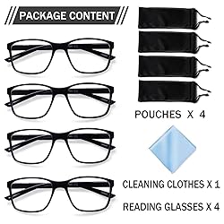 Three ln One: Blue light reading glasses are fully customized to provide a smooth transition between distance and close vision. Progressive lenses have a progressive power of correction from the top to the bottom of the lens. They allow you to switch between looking at objects near and far without changing eyewear. (NOTICE: Top of lense is NOT ZERO. Wearing multifocal reading glasses for the first time may require 7-14 days to get used to.) Blue light Blocking:Advanced Blue Light Blocking Technology, Protect your eyes from harmful digital screen emissions during prolonged computer use, reducing eye strain and fatigue Spring Hinges:Flexible Spring Hinge Lightweight Design,Enjoy a secure, comfortable fit for all head sizes (men & women) with durable, stylish frames that adapt to your movements Practical 4 Pack Combo: Our VIsiwell Multi-Focus Anti-Blu-ray Lightweight Reader is available in a 4-pack to meet your daily needs for clear vision at work, reading and leisure Worry-free service:Risk-Free Purchase Adaptation Support,Try worry-free with our satisfaction guarantee. Includes guidance for the 1-3 week adaptation period to progressive lenses