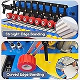 [Woodworking Edge Bander] The edge bander is mainly used for sealing the edge of the plate section. It has compact structure, reasonable layout, beautiful appearance, with curved edge sealing, double-sided gluing, automatic tape breaking, trim neatly head and tail, automatic plate feeding, upper and lower trimming, double-sided polishing and other functions. [Curved and Straight Edge Banding] The edge banding machine can easily handle straight, curved and arched boards for edge banding. It finds wide applications in industries such as woodworking, furniture edge banding, cabinet processing, and home improvement projects. It works with various materials, including ABS, PVC, particle board, melamine, fine wood, MDF, integrated board, and acrylic. [Control Panel] The banding speed and temperature control can be independently adjusted using separate switches. The edge banding machine features an adjustable banding speed ranging from 0 to 19.7 feet per minute (0 to 6 meters per minute). The edge banding machine also includes a polishing function that smoothly rounds edges for a refined finish. [Double-sided Gluing] The multi-function microcomputer sealer ensures quick, uniform edge banding with an enlarged glue pot for faster heating and ample adhesive. For optimal performance, allow the machine to heat for an additional 3–5 minutes after reaching temperature before activating the speed controller to prevent motor strain from uneven glue melting. [Application] The edge banding machine works with all kinds of density boards, pellet boards, multi-layer solid boards, wood-based boards and other boards. This edge banding machine has packaging dimensions of 51.57*23.62*27.95 inches and weighs 223.77 lbs.