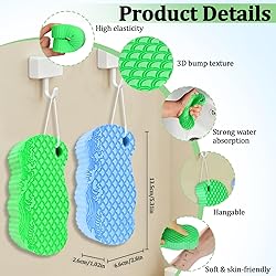 Deep Cleansing:This 2pcs magic exfoliating bath sponge effectively removes dead skin cells and impurities, promoting blood circulation, reducing acne, and leaving skin looking naturally radiant.Gentle and non-irritating,it's perfect among exfoliating sponges for body Special Design:The bumpy texture on this 3D exfoliating bath sponge is soft and flexible, suitable for all skin types, for a more comfortable bathing experience Premium Material:This painless magic exfoliating sponge is made of high-density, soft PVA material that deeply exfoliates while maintaining super absorbency and quick-drying properties, leaving skin clean, refreshed, and revitalized Convenient Storage:Our exfoliating sponges for body is compact and portable, and come with a lanyard so you can hang them after use to save space and keep them dry and tidy Easy To Use: This lanyard bath sponge is easy to use. First wet your body, then dry your body, then wash the exfoliating bath sponge, then gently rub your skin back and forth, and finally rinse it clean to easily complete your daily body care. Note--For best results: Rinse and soak until the keratin softens, ensuring skin is free of oil/grease. Do not scrub while rinsing.