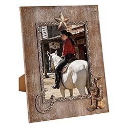 - Specification: Farmhouse Cowboy Picture Frames 8x10 Rustic Vintage Decor 8x10 photo frame farmhouse for tabletop or wall decor is rustic wood picture frames great for multiple decor, it's vintage and rustic unique shabby chic design, Clear definition glass front with 1 sawtooth hook, wood cool picture frame, it's perfect for your home office decor. 8x10 wooden picture frame vintage farmhouse style distressed wood photo frames with high-quality clear glass and hemp rope for vertical or wall mounting. ♥ Warm Tips Due to our 5x7 wood photo frames all is handmade, every picture frame is unique, and we are made of rustic real wood with cowboy element design so it will be have some natural texture and wooden knot in the frames, it may have little burrs, It's normal because we are made of solid wood. Our brown photo frames are durable enough to buy with confidence.