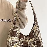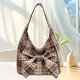 - Description: This large capacity tweed bag is crafted to combine fashion with everyday practicality, featuring a spacious interior ideal for carrying all your daily essentials securely. Its classic plaid pattern paired with soft yet tweed fabric provides a timeless aesthetic suited for women and girls who appreciate elegance and versatility. The adorable bowknot detail adds a subtle feminine charm that stands out without overwhelming the overall design. Designed as a shoulder tote, it delivers comfort and style, perfect for various occasions such as work, shopping, or casual outings. The reinforced shoulder straps and quality craftsmanship ensure durability and shape retention, making this purse a dependable and chic addition to any wardrobe. Embracing both classic style and modern function, this bow tote handbag brings users a fashionable statement piece that meets the demands of active lifestyles, enhancing outfit coordination while providing ample storage capacity. Features:. -Color: Coffee. -Material: Coarse woven. -Size: about 31x11x29 cm/12.2x4.3x11.4 inch. Note: Manual measurement, please allow slight errors on size. The colors may exist slight difference due to different screens. Package Including 1 x Tweed Bag