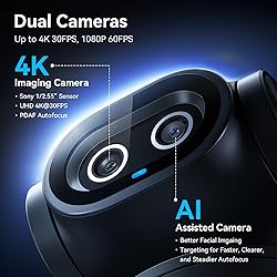 World's 1st Dual-Camera AI-Powered PTZ 4K Webcam - EMEET PIXY combines a 4K main imaging camera with PDAF focus and 1/2.55" sensor for ultra-clear video. Another auxiliary AI camera detects face position to optimize autofocus and exposure, though results may vary by lighting; recommended for use in bright natural light. PDAF and AI Autofocus deliver blink-speed 0.2s focusing vs Others’ 1.1s. Ideal for beauty streaming, product demos, fitness shows, online teaching, business meetings and more. 3-chip Smoother Intelligent Tracking - PIXY streaming camera uses 3-chip AI for faster, smoother performance than 1-chip models. The imaging chip keeps framing stable, AI assist chip predicts motion and lighting, and the PTZ chip enables 310° pan/180° tilt. Gesture control starts with an open palm held center for 2s. PIXY web cam keeps subjects centered and tones natural, but AI tracking works best for single-person or moderate moves; in multi-person or fast motion, delays or loss may occur. EMEETSTUDIO Control Software - Features are easily controlled via EMEETSTUDIO. Preset positions switch angles instantly; fine-tuning ensures perfect framing. Whiteboard mode auto-detects boards with manual adjustment—no stickers needed. Privacy mode activates by tilt, timer, or app. In 1080P & 2K 30FPS, FOV adjusts with up to 1.5X digital zoom; in 4K 30FPS & 1080P 60FPS, settings are locked for stability. Keep EMEET STUDIO updated for bug fixes. Ideal webcam 4K and podcast camera for creators. 3-Mic Array for Multiple Scenes - EMEET PIXY PTZ camera uses a triple-mic array for crystal-clear sound. Live Mode filters steady noise like fans&AC for smooth live streams. Noise Canceling Mode blocks both steady hums and sudden sounds like keyboard clicks or door slams, designed for podcasts, courses, and recordings. Original Sound Mode captures surrounding sounds. With multiple recording modes, PIXY streaming webcam achieves studio-grade versatility without extra mics. PIXY Makes Pro Studio Easy, Affordable & Engaging – PIXY 4K webcam for PC with "adorable dual eyes" delivers emotional, immersive streams. Dual-axis PTZ smoothly tracks every move without blind area. Mount via clip (included) or tripod (sold separately). Supports OBS, Twitch, YouTube, Switch 2 Camera, Xbox, Windows 10+(64-bit, not ARM), and macOS 10.14+. Unlike gear‑heavy phones or costly DSLRs, PIXY live camera unifies imaging, tracking, audio, and AI into one facecam.
