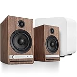 - The perfect tabletop speaker The HD4 Wireless Speakers are a compact home music system with high-fidelity stereo sound for smaller spaces. Stream your music in seconds from any app or device via high-definition aptX HD Bluetooth. The HD4 sits perfectly between their siblings the HD3 and HD6 to complete the award-winning Audioengine HD series. The HD4 offers the perfect upgrade for a desktop turntable or main living room system where space is at a premium but performance cant be sacrificed. Small speakers BIG sound The HD4 Wireless Speakers are constructed with custom Audioengine components: Aramid fiber woofers silk tweeters Premium Bluetooth aptX-HD and built-in analog power amps wrapped in precision-tuned hand-built and finished wood-veneer cabinets. A perfect blend of cool retro looks with modern functionality. Set up in seconds. Simple. No Hassle. Easy to use. No network to setup and all inputs are always ready to go. Connect a TV or turntable via the mini-jack or RCA inputs use the onboard DAC and connect via USB to a computer stream high res wireless with aptX HD Bluetooth or just plug in headphones at your desk! The HD4 is an incredibly high performance high value system for almost any application. Go old-school analog baby! Audioengine speakers are special. Their built-in analog power amplifiers sound incredible compared to digital amps found in other mass-produced brands at comparable price points. What's in the Box HD4 Speakers (pair) Power Cable Speaker wire (to connect the speakers) Specifications Type: 2.0 powered (active) bookshelf-style speaker system Amplifier type