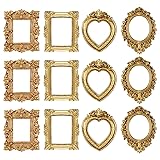 Zelphvt 12 Pcs Miniature Picture Frames Mini Vintage Gold Frame Antique Resin Rectangle Jewelry Frame DIY Photo Crafts Tiny Picture Frames Christmas Party Wedding Decoration