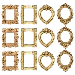 - Product Name: mini vintage framesColor: GoldMaterial: ResinPackaging Contents: 12pcs miniature picture frames