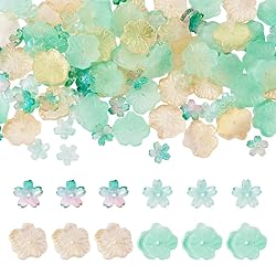 Craftora 100Pcs Flower Leaf Glass Bead Caps 5-Petal Flower Bead Green & Blanched Almond Lotus Leaf Spacer Beads for Earring Bracelets Jewelry Making