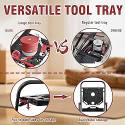 Extra-Large Wide Tool Tray: Built-in large-sized tool platform that can hold various tool equipment. The platform easily accommodates multiple tools such as screwdrivers, paintbrushes, and small toolboxes, with all tools securely placed,preventing repeated climbing to fetch items during operation 800LBS Sturdy Step Ladder:The DIAMONDFORGE folding ladder adopts a sturdy high-strength iron frame, with a maximum load-bearing capacity of up to 800 lbs. It ensures excellent load-bearing capacity and stability, easily meeting the needs of various heavy-duty tasks, and is suitable for scenarios such as home maintenance and garage projects Non-Slip Wide Pedals: Each step ladder features a widened design with a striped anti-slip surface, greatly expanding foot support area and enhancing friction through stripes to effectively prevent foot slippage. The four bottom rubber feet also provide anti-slip performance while protecting floors from scratches Space-Saving Design:This step stool features a practical foldable design. When folded, it has a slim thickness, takes up minimal space, and can be easily leaned against a wall, placed in a corner, or stored under a bed or in a wardrobe Safety and Stability:When the step ladder is unfolded, its metal safety buckle locks automatically to prevent accidental folding; the included sturdy handrail further enhances grip safety. Combined with the back cross structure that reinforces base support, it improves overall stability by distributing weight evenly