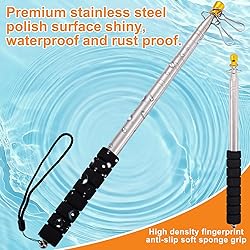 Package Includes:This retractable flag pole set includes 1pcs upgraded 9.8ft black extendable flag pole with firm and elegant lanyard,4pcs 2-types clips for hanging tour guide flags,American flag or banner.These 2 styles flag clips can fit different size of flags or banners,perfect for 3' x 5', 4' x 6' or smaller flags.All in one package,required accessories are included,save your time and energy! Premium Quality&Durable:Our telescoping flag pole is made with stainless steel body,crafted with precision mechanics,and the surface is polished,making the flag pole sturdy and durable,non rusting,wear-resistant and corrosion resistant,can be flexibly adjusted,easy to stretch;Double pressure groove reinforcement design,stable and non shaking. Lightweight & Portable Telescopic Design:This portable flag pole height after contraction is only 14inch,very easy to carry and store.And the guide flag pole consists 11 extendable sections,each section is firmly connected;the length can be adjusted to 1.16ft-9.8ft.With 6.6 oz weight for easy to carry,easy to storage in your travel bag or backpack.Note:When fully extended - shorten from top to bottom - keep the thicker part of the bottom fully extended and locked for stability. Anti-Slip Soft Sponge Grip & With Lanyard:This handheld flag pole is equipped with soft high density textured sponge handle,fashion,comfortable and anti-slip for using.Also with our pretty tail lanyard,you can hang the flag pole on your wrist to prevent it falling off,easy to carry.Perfect flag pole for festivals. Wide Applications:Our handheld adjustable flag poles with clips can be used for hanging flags and banners,suitable for festivals,tourism,parade,outdoor activities,sports events,camping activities,festivals celebrations,travel agencies,car,tour guides small flag pole,pointer for teachers and so on.It’s an indispensable practical tool for tour guide,teachers,commanders etc.