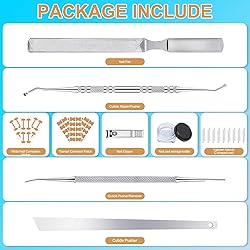 【All-in-One Professional Ingrown Toenail Kit】This complete care set includes 50 correction patches, 20 I-shaped correction stickers, 16 corrector strips, 3 cuticle pushers, a flat-head nail clipper, and a nail file. It’s a one-stop solution for ingrown nails, designed for at-home use with no special skills required—even beginners can achieve great results 【Promotes Healthy Nail Growth & Relieves Discomfort】The toenail correction strips and patches apply gentle upward pressure to flatten the nail, adjust its growth direction, and reduce pressure from embedded nails. It eases redness, swelling, and pain while preventing ingrown toenails from recurring, supporting natural, healthy nail growth long-term 【Comfortable, Breathable & Discreet Wear】Crafted from soft, elastic, and breathable fabric, the patches conform to the nail’s natural curvature. They’re thin enough to wear with shoes and socks comfortably, causing no discomfort during daily activities, exercise, or work—ideal for long-term use without disrupting your routine 【High-Quality Professional Nail Tools】Equipped with 304 stainless steel and sharp, durable tools: the nail clipper trims tough nails cleanly, the thick nail file smooths edges, and the straight/curved cuticle pushers gently clean nail grooves. The slanted pusher also handles calluses and rough skin for comprehensive foot care 【 Universal Size for All Users, Wide Compatibility】This at-home ingrown toenail treatment features a universal size design, perfectly fitting men, women, adults, and seniors. It adapts to different nail shapes and thicknesses, eliminating the hassle of choosing specific sizes—one set meets the foot care needs of the whole family