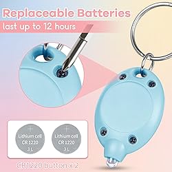 Ultra Bright LED Flashlight: The flashlights provide a brightness of 12 Lumens. The bright white light could light up to 33 feet. Perfectly meets your multiple lighting needs. Light and Portable: Each keychain flashlight is equipped with a 1-inch key ring, which makes it easy to attach it to your keychain and other places. Each item only weights 0.2 oz. It can add no extra burden to your keychain. Replaceable Batteries: Each keychain flashlight contains 2 CR1022 button batteries, which provide up to 12 hours of continuous use. The batteries can be easily removed and replaced when they run out. Easy Lighting Method: Slide the ON/OFF switch, the light would be constantly on. Simple operation allows you to easily use it in all kinds of activities. Wide Application: Comes with 7 pcs keychain flashlights. It is a perfect tool for outdoor activities like camping, hiking, repairing and so on. It's also a good choice for Christmas presents.