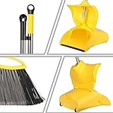 MuLing Adjustable Heavy Duty Angle Broom and Stainless Steel Dustpan Set, Yellow Wide Stiff Bristle Broom with Extendable Handle & Standing Dust Pan for Indoor Outdoor Cleaning (Home, Kitchen, Garage,