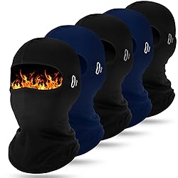 Ample Quantity: you will get 5 pieces of quality balaclavas; Having multiple masks on hand means you can keep clean ones ready to use or share with family and friends; Enjoy a group skiing trip or outdoor adventure with every member kitted out in quality, comfortable face protection Good for Eyeglass Wearers: the innovative design of the balaclava face mask men and women features the unique glass holes, making it a nice suit for eyeglass wearers; You can enjoy your outdoor activities without worrying about getting uncomfortable Material for Warmth and Comfort: the balaclava ski mask is lined with thin fleece, providing warmth while maintaining lightweight, and the outer fabric is made of quality spandex and polyester, ensuring elasticity, reliability, and wearer comfort; It is resilient against harsh weather conditions and wear and tear, providing you with a reliable accessory for your outdoor adventures Ideal Size for Everyone: with one size that comfortably fits most, the ski mask men and women caters to most users without discrimination; The stretchy spandex fabric allows a snug fit for various head sizes and shapes; Enjoy the comfort and protection whenever you go skiing, hiking, or engage in other outdoor activities Versatile Wearing Methods: our head mask for men and women offers flexibility with multiple wearing methods, allowing you to adjust your look depending on your needs and preferences; Whether you need full face protection from the cold, or a stylish neck scarf, head wrap and helmet liner, this is the nice multi functional accessory for you