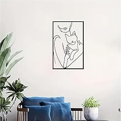 【Design Excellence】This steel home wall decor features an elegant design with motifs of female and animals cats, making it the perfect gift for cat lovers. Its sleek, modern design exudes artistic flair, adding a fresh, natural ambiance to your patio or garden. It also serves as an ideal accent piece for bathroom walls. 【Sturdy Material】Iron Wall decor living room with frame,of lightweight metalthat will not break or corrode, does not fade, is odorless, durable and reliable.Abstract line iron art,Elegant lines of Iron art, suitable for indoor and outdoor, can be used for a long time 【Suitable Size】The dimensions of this vintage-inspired, aesthetically pleasing 3D-designed hanging farmhouse decorative art piece are: 15.7 x 10.2 inches / 40 x 26 cm, can be hung anywhere in your home, making it a beautiful home decor piece. 【Easy Installation】Steel Abstract Modern Wall Plaque, easy and convenient to install, designed with holes, easy to hang in living room, dining room, coffee shop, bar 【Wide Application】Rustic natural themed metal paintings wall decor to dress up your house decoration, minimalist art wall sculpture or you can hang them outside your house and office.halloween thanksgiving christmas gifts。 You can also give Bedroom Metal Art wall signs to your loved ones or friends as birthday, wedding, housewarming, festival, anniversary or other holiday gifts to express your blessings to them!