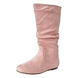 Slouchy Mid Calf Flat Boots for Women Round Toe Side Zipper Wide Width Tall Boots Soft Faux Suede Low Heel Pull On Booties Comfortable Fall Winter Fashion Outdoor Slouch Booties