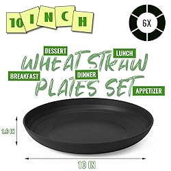 - Perlapoc's 6-piece set of 10-inch deep dish plates offers reliable performance for everyday dining needs. Made from premium wheat straw material, these sturdy plates are perfect for family meals, outdoor activities, and daily kitchen use. Product Details: Healthy & Safe Material Our wheat straw plates are crafted from food-grade materials that are completely BPA-free and non-toxic. The wheat straw fiber creates durable plastic plates that withstand regular use, making them ideal as kids plates, toddler plates, and family dinnerware for daily meals. The material is food-safe for complete peace of mind. Deep Dish Design Prevents Spills Featuring practical deep dish construction with raised edges that effectively contain food and prevent spills. This spill-resistant design works perfectly for saucy foods, loose items, gravies, and salads. Excellent as pasta bowls, salad plates, or dinner plates for children, seniors, and family meals. Unbreakable & Lightweight Construction These durable plastic plates resist breaking, cracking, and chipping under normal use conditions. The sturdy yet lightweight design makes them easy to handle for all ages - perfect as camping plates, picnic dishes, RV essentials, and outdoor dinnerware. They provide a reliable alternative to fragile ceramic plates for both indoor and outdoor use. Dishwasher & Microwave Safe Clean these kitchen plates effortlessly in any dishwasher without damage or warping. Use them safely in the microwave to reheat leftovers, prepared meals, and various foods. The heat-resistant material handles normal reheating needs while maintaining its shape and color through repeated use. Versatile Multi-Use Plates This versatile set works perfectly for breakfast, lunch, and dinner service in various settings. Suitable for school lunches, office meals, family gatherings, party events, and holiday celebrations. The practical design supports use in home, party and outdoor. Specifications: Set includes: 6 deep dish dinner plates Plate size: 10-inch diameter, 1.5-inch height Material: Wheat straw fiber Colors: Black Features: Unbreakable, Lightweight, dishwasher safe, microwave safe Suitable for: Indoor/outdoor use, family dinners, kids meals These wheat straw plates provide dependable service for family dining and outdoor activities. Their unbreakable construction and practical design meet the needs of households seeking reliable, easy-to-clean dinnerware for various dining occasions.