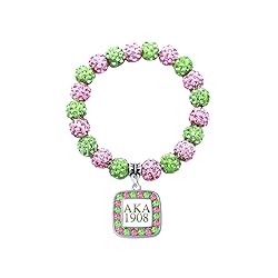 - "This exquisite AKA bracelet beautifully embodies heritage through its elegant pink and green alloy beads with diamond-encrusted. Designed for lasting wear, this scratch-resistant bracelet maintains its vibrant colors and shine through daily use. The adjustable chain ensures a comfortable fit for most wrists, making it versatile paraphernalia suitable for all sisters. Presented in elegant gift packaging, this AKA bracelet serves as fit for AKA sorority gifts for women, ready for immediate presentation. Whether for campus events, chapter meetings, graduation ceremonies, or everyday wear, this piece transitions seamlessly while proudly displaying sorority pride. More than just jewelry, this AKA paraphernalia symbolizes the unbreakable bonds of sisterhood. Each time it's worn, it serves as a beautiful reminder of the special connection shared among sisters, making it a treasured keepsake that honors tradition while complementing modern style."