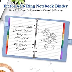 - Antner A5 Refill Paper Planner Refills, 6-Hole Planner Inserts Loose Leaf Paper with Binder Dividers Elevate your note-taking experience with our thick & no-bleeding paper. The A5 refill paper is 5.6 x 8.3 inch. 6-hole pre-punched, fit for standard 6-ring notebook binder. This set contains 3 pack A5 lined filler paper, for a total of 135 sheets; 12 pcs binder dividers in 6 vibrant color for categorizing and positioning. You can enjoy a superior writing experience on our thick, smooth-finish paper. It prevents ink from feathering or seeping through. The paper inserts perfect for use with fountain pens, gel pens, markers, and highlighters. Write smoothly on both sides without compromise. Ideal for use as loose-leaf paper for 6-ring binder; Planner inserts for daily and monthly planning; Filler paper for refillable journals and diaries; Note-taking sheets for school, campus, and office.