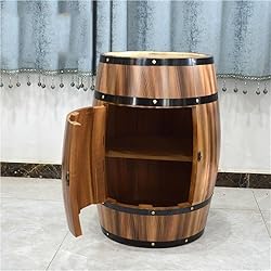 - Enhance your space with this solid wood whiskey barrel table, a perfect blend of rustic charm and functional design. Built from thick, sturdy wood with sturdy barrel staves, this table features a smooth tabletop and reinforced structure that promise long-lasting stability. The unique barrel-inspired shape complements a variety of interiors — from modern rustic homes to vintage-style bars. Inside, two fixed shelves provide practical storage for liquor bottles, bar accessories, or other small items, helping you keep your space organized and stylish. With a convenient latch door, the barrel can be closed to serve as an elegant side table or decorative accent, while the flat top doubles as a small bar counter or display area. Whether placed in your living room, home bar, or wine cellar, this wooden barrel table delivers timeless craftsmanship, aesthetic appeal, and everyday utility.