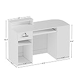 【Modern Reception Desk】- Welcome your visitors to this stunning reception table! A clean, crisp white-looking accent with 2 sizes of open shelves gives this receptionist desk a modern and chic look that is sure to make an impression. Start your workday stylish and professionally at our counter desk. 【Sturdy Structure】- Crafted from high-density fiberboard, this receptionist desk boasts a sturdy and durable structure. Its sturdy construction can withstand everyday use, providing excellent weather resistance and water resistance for long-term use. This desk is not only practical but also a cost-effective investment for your business. 【Ample Storage】- 47.2"W * 18.9''D large desktop offering excellent room for your computer, files, papers, or decorations to keep your work essentials organized. There are 2 drawers and 8 shelves shelves in the working area, the countertop allows to place your small printers and documents.Wraparound side panels create a more private area so you can focus on the task at hand.Moreover, the spacious front counter space allows for easy transactions and interactions with clients, facilitating efficient workflow in high-traffic areas like clinics, salons, retail stores, or office lobbies. 【Versatile Application】 - Designed in a suitable size, this white reception desk fits anywhere. More than as a front desk for corporate offices, a retail counter for boutique shops and beauty salons, or even a computer desk in a workstation. Whether you place it in a law office, beauty salon, restaurant, or grocery store, this reception table will be the highlight of your establishment. 【Easy to Assemble & Satisfaction】 - This reception desk offers you enough space for stuff. with detailed installation instructions and hardware tools, each piece is labeled, follow the steps of enclosed instruction.No need to worry about receiving defective product or missing parts. Any question, just click “contact seller” to get satisfied solutions. Hope you a nice day~