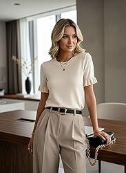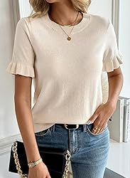 Versatile Seasonal Essential: This EVALESS summer sweater doubles as perfect spring clothes, featuring a classic crewneck and trendy short sleeve design that transitions seamlessly from warm summer days to cool spring evenings. Crafted with lightweight and soft knit fabric, it keeps you comfortable whether you’re running errands during casual leisure time or enjoying a sunny vacation. Cute Puff Sleeve & Slim Fit Design: Stand out with the adorable cute puff sleeve detail that adds a touch of femininity, while the Slim Fit cut flatters your figure without feeling restrictive. As a stylish knit top, it’s ideal for date nights or weekend shopping trips—pair it with jeans or a skirt for an effortlessly chic look that’s sure to turn heads. Business Casual & Formal Ready: Elevate your workwear with this EVALESS knit top! Its crewneck and neat short sleeve style fit perfectly into business casual outfits, making it suitable for office meetings or formal work events. The soft, lightweight fabric ensures all-day comfort, so you can stay focused from morning meetings to evening deadlines. All-Occasion Style: From casual leisure days at home to lively parties and night outs, this short sleeve crewneck knit top is your go-to choice. The Ribbed texture adds subtle sophistication, while the Slim Fit silhouette keeps you looking polished. Whether you’re grabbing coffee with friends or attending a small formal gathering, it balances comfort and style effortlessly. Premium EVALESS Quality: Designed with durability and style in mind, this EVALESS summer sweater is made from high-quality, soft knit fabric that retains its shape and softness wash after wash. As a versatile addition to your wardrobe, it works as both a standalone top for spring and summer or a layering piece for cooler days—perfect for daily wear and all your upcoming activities.