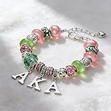 RUIFUU Alphah Sorority Bracelet for Women,Rhinestone Greek Sorority Bracelet AKA Sorority Gifts for Women Pink Green Crystal Jewelry for Sisters Ladies Sparkling Dress Accessory