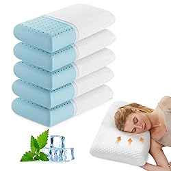 DUMOS Memory Foam Pillows for Sleeping 5 Pack, Bed Pillows for Adults with Washable Cover and Breathable Mesh, Gel Cooling Pillow for Back and Side Sleeper Support, White