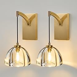 Superior K9 Crystal - The lampshade of this brass wall sconce is made from custom-crafted K9 crystal, meticulously annealed and hand-polished to achieve exceptional clarity and brilliance, softly diffusing the light Premium Quality - This gold wall sconce features a durable brass frame with anti-oxidation coating that resists rust and fading. The Transparent crystal body provides 360° wide-angle illumination, brightening every corner Bulbs Included - The package includes two E12 bulbs. The crystal wall sconces has a heat-resistant ceramic socket for extended bulb life. With a dimmer (not included), brightness is adjustable from 0 to 100% Versatile and Elegant - Perfectly suited for various indoor spaces, this wall sconce provides warm, inviting illumination for bathrooms, bedrooms, living rooms, hallways, or vanity areas. Its soft, evenly distributed light enhances the atmosphere and complements any décor effortlessly BlesULuk Care For You - All our bathroom wall sconces undergo strict quality inspections before leaving the factory to ensure you receive high-quality, reliable, and durable products. Whenever you need us, the BlesULuk team is always ready to assist you and resolve any issues
