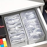 Stackable cord storage organizer:The cable storage box adopts stackable design, and the storage box has 22 compartments to meet your needs. Stackable design can reduce the occupation of desktop and drawer space.Ideal for cramped desks, crowded drawers。 Durable Cable Organizer Box:You will get 2 Pcs 11 Box cable storage boxes.organizer is made of high quality plastic, transparent, strong and dustproof. Visual design allows you to choose items in time Practical organizer:charger cable cord storage organizer can be widely used in families, offices, and it is a useful tool to organize small items. The cable can be fixed in a proper position without mixing, and the problem of data wire entanglement can be easily solved. Multi-purpose plastic box:sorting box is very suitable for storing and fixing cables, power boards, headphones and mobile phone chargers, and can also be used as cosmetic and jewelry boxes for storing earrings, rings, watches, lipsticks, bracelets and necklaces. Widely used: plastic cable organizer can be widely used in home, office, art, and it is a really useful tool to organize desks, drawers, cabinets, classrooms, living rooms, countertops, bedrooms and other items (stationery, jewelry, cosmetics, etc.)