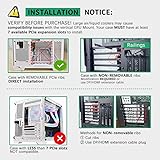 [Unleash Next-Gen Performance] Future-proof your build with a true PCIe 5.0 x16 Gen5 Riser Cable. This V3 kit includes a premium 15cm, 90-degree shielded cable engineered for the massive bandwidth of RTX 40/50-series and next-gen GPUs. (Note: For max stability, plug directly into the motherboard's primary x16 slot). [Fully Adjustable & Synchronized ARGB] Fine-tune your PC's aesthetic. The bracket is adjustable from 13cm to 17cm (130-170mm), allowing you to set the perfect distance between your GPU and motherboard for clearance or airflow. The built-in 5V 3-pin ARGB strip syncs perfectly with Aura Sync, Mystic Light, RGB Fusion, and more. [⚠️ CRITICAL CHECK #1: Case Slot Requirements] This bracket is NOT universally compatible. Your case MUST have at least 7 available PCIe expansion slots to install. It is ONLY compatible with cases featuring an OPEN-SLOT design. Cases with metal crossbars or dividers between each slot (as shown in image 4) are NOT supported unless you physically modify (cut) your case [⚠️ CRITICAL CHECK #2: Component Clearance] Vertically mounting your GPU changes your case's internal layout. Please MEASURE YOUR CLEARANCE before buying. Large CPU tower air coolers (e.g., Noctua NH-D15, Deepcool AK620) or thick front/side-mounted radiators may interfere with the backplate of the vertically mounted GPU. [Heavy-Duty Steel Construction] Built to last, this sturdy steel bracket prevents GPU sag and securely holds even the heaviest graphics cards. The robust frame provides a stable foundation for your GPU. Kit includes: 1x V3 Adjustable Bracket, 1x PCIe 5.0 Riser Cable, and all necessary mounting screws.