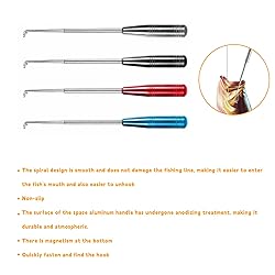 - Whether you're enjoying the fun of fly fishing in a mountain stream, challenging sea bass by a tranquil lake, or embarking on a sea fishing adventure in the near or deep sea, this hook extractor is perfect for it. It is compatible with all types of fishing hooks - single hook, triple hook, round hook - and covers sizes from mini disc fishing hooks to large saltwater fishing hooks, easily meeting diverse fishing needs. The body is lightweight and compact, taking up almost no equipment space for storage. It can be carried with you every time you go fishing, and you no longer have to regret missing key tools.Hook remover Five core advantages unlock a new experience of efficient hook retrievalSpiral smooth design, does not damage the line and protects the fish moreInnovative spiral hook structure, smooth and burr free surface, will not wear down the fishing line during operation; The spiral curvature can easily penetrate deep into the fish mouth, quickly release the hook, and reduce additional damage to the fish body throughout the process.Three simple steps for beginners to get started in secondsNo need for complex techniques, simply thread the fishing line through the hook extractor adjustment ring → slide along the fishing line to the hook position → gently rotate to quickly unhook, and complete the entire operation with one hand, saving time and effort.Adjustable fishing ring mouth, suitable for full-size fishing linesThe size of the loop can be freely adjusted, whether it is an ultra-fine lure line or a thick sea fishing line, it can firmly fit and completely say goodbye to the problem of hook failure caused by inconsistent thickness of the fishing line.Space aluminum anodized handle, durable and resistant to manufacturingThe handle is made of high-strength aluminum alloy material and treated with anodizing technology. It not only has outstanding texture, but also has excellent rust prevention, corrosion resistance, and fading resistance. It can be used for a long time in both sea fishing and freshwater fishing environments.Strong magnetic adsorption at the bottom makes it more convenient to store fish hooksThe bottom of the tool is equipped with a strong magnetic design, which can directly attach the fish hook after taking it out, avoiding the fish hook from scattering and injuring the hands, and also making the storage of small accessories more tidy.Material: The main body is made of carefully selected stainless steel, which is sturdy and not easily deformed; The handle is paired with anti slip , providing a more stable grip and not tiring to use for a long time.Size: Available in two sizes, easily adaptable to different fishing scenariosLarge size: 28.5 × 10.5cm (11.2 × 4.1in)Small size: 16.6 × 1.4cm (6.5 × 0.55in)Color: Available in 5 color options: red/blue/gray/black/silver, to meet the personalized matching needs of fishing enthusiasts