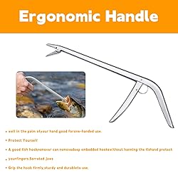 Spiral extractor design: The fish hook remover tool kit innovatively features a spiral extraction structure that supports 360 ° quick hook retrieval without dead corners. The user-friendly design greatly simplifies the operation steps, saving hook retrieval time, avoiding hand scratches from the fish hook. The adjustable circular mouth is suitable for different thicknesses of fishing lines, as well as various types of eagle claw hooks, making it easy to cope with various fishing scenarios. Usage: The fishing hook remover is equipped with a spring-loaded handle, coupled with strong gripping force of the jaws, and can be easily hooked with one hand. When in use, simply align the circular mouth with the fish hook and gently rotate the tool to quickly remove the fish hook; The freely adjustable circular mouth design further enhances operational flexibility, without the need for additional assistance throughout the entire process, making it efficient and worry free. Widely applicable: The fishing hook is suitable for various fishing methods, whether it is ice fishing, lake fishing, or freshwater or saltwater fishing, it can easily handle them. Especially for the situation where the fish hook is swallowed deep into the mouth by the fish, the spiral extraction design can accurately penetrate deep and easily remove the fish hook, making it an essential practical accessory for fishing enthusiasts. Hook remover tool fishing Durable anti slip material: The handle is made of anti slip material, which provides a stable grip and is not easy to remove; The main body is made of durable stainless steel material, and the anodized surface has excellent stability, corrosion resistance, and fade resistance. It will not rust or deform after long-term use. The lightweight and portable design allows for easy placement in fishing gear bags for easy access and use. Fish hook remover size: 5 fish hook removers. The fish hook remover comes in different sizes: large size: 28.5 × 10.5cm (11.2 × 4.1in) Small size: 16.6 × 1.4cm (6.5 × 0.55in)