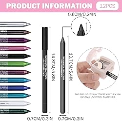Smooth Gel-Pencil Application: The creamy gel liner eyeliner formula glides on effortlessly without tugging, allowing for precise lines, subtle shading, or bold graphic designs. Versatile Makeup Tool: Use these pencils as a glitter eyeliner pencil on the lids, a vivid liner on the waterline, or even as a base eyeshadow, unlocking your full creative potential. Vibrant 12-Color Collection: This colorful eyeliner set brings a spectrum of shades from classic neutrals to bold metallics, giving you endless creativity for any look or occasion. Long-Lasting Wearable Comfort: Once applied, the formula sets to a comfortable, budge-proof finish, giving you the confidence to express yourself without worrying about touch-ups. Waterproof & Smudge-Resistant Formula: Each waterproof eyeliner pencil is designed to resist fading, sweating, and transferring, ensuring your artistic designs stay sharps all day or night.