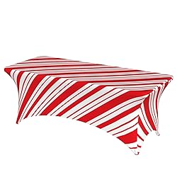 MZERSE Spandex Table Cover Fitted Rectangular Tablecloth Christmas Red Candy Cane Stripes, Stretchable Fabric Tablecloth Wrinkle Free for Party, Banquet, Wedding and Events