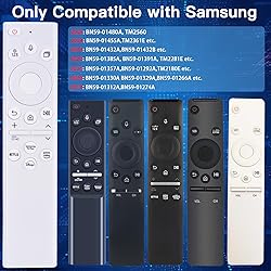【Wide Compatibility】-This high-quality remote is designed for Samsung TVs from 2019 to 2025 and features voice control. It’s compatible with a wide range of Samsung Smart TV series, including Neo QLED, OLED, QLED, Crystal UHD, The Frame, The Serif, The Terrace, The Sero, and Micro LED models. It can replace many remote models such as BN59-01385A/B, BN59-01432A, BN59-01455A, BN59-01357A/F, and the BN59-01312 series (including BN59-01312A, BN59-01312F, BN59-01312D, etc.), as well as the BN59-01329, BN59-01330, BN59-01357F, and BN59-01385B series. 【Easy Pairing and Voice Control】–Just press and hold the Back (or Exit) and Play/Pause buttons at the same time for 5 to 7 seconds, until you see “Pairing complete” on the TV screen.Then you can quickly search for your favorite movies or TV shows without typing. It also lets you adjust TV settings and access features using simple voice commands. 【User Friendly】 Built with eco-friendly ABS material, this remote is safe and easy to use for all ages. The buttons are highly durable,Featuring a high-performance chip, it offers accurate Bluetooth voice control from up to 40 feet away. Whether you're searching, playing, or pausing content, it responds smoothly from any angle. Upgrade now for effortless, long-lasting control over your entertainment. 【Quick Response and Durable Design】- 0.15s fast response.AFTER PAIRING,you can control your TV from multi-angle and without obstruction.Each button is built to last for more than 100,000 clicks or 9 years. 【Solar Charge】 -With solar charging technology, combined with a built-in rechargeable battery, and supports USB Type-C interface charging, which effectively solves the problem of frequent battery replacement in traditional remote controls and greatly improves the convenience of use and environmental protection. When charging normally, the indicator light on the remote control will light up to show the charging status, ensuring that users can intuitively understand the power information