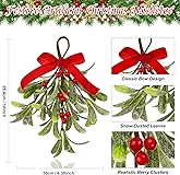 Mistletoe Christmas Decor, Artificial Hanging Mistletoe Picks with Velvet Bow Red Berries,Like Real Christmas Kissing Ball Ornaments for Doorway Kitchen Mantel Decorations (1)