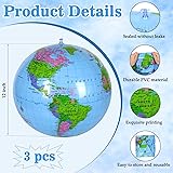 Package includes: come with 3 pack inflatable globes which perfect as teaching tools or outdoor inflatable ball; You can use it play in the beach, pool, ocean with family or friends together for water fun play Globe earth design: our inflatable world globe clearly shows continents, countries, rivers, oceans on earth, easy to recognize Quality material: these inflatable earth balls are made of environmental PVC and reinforced splice for playing for a long time, easy to inflate and deflate, and superior workmanship with good sealing Human-friendly size: the inflatable ball is about 12 inch in size after inflated, this appropriate size bring a good handle feels, easy to grasp Multiple applications: these globes are suitable for geography teaching, learning or playing as beach balls, inflatable pool balls; In the beach, pool play, pool parties, summer parties and can even be used for student gifts and graduation parties