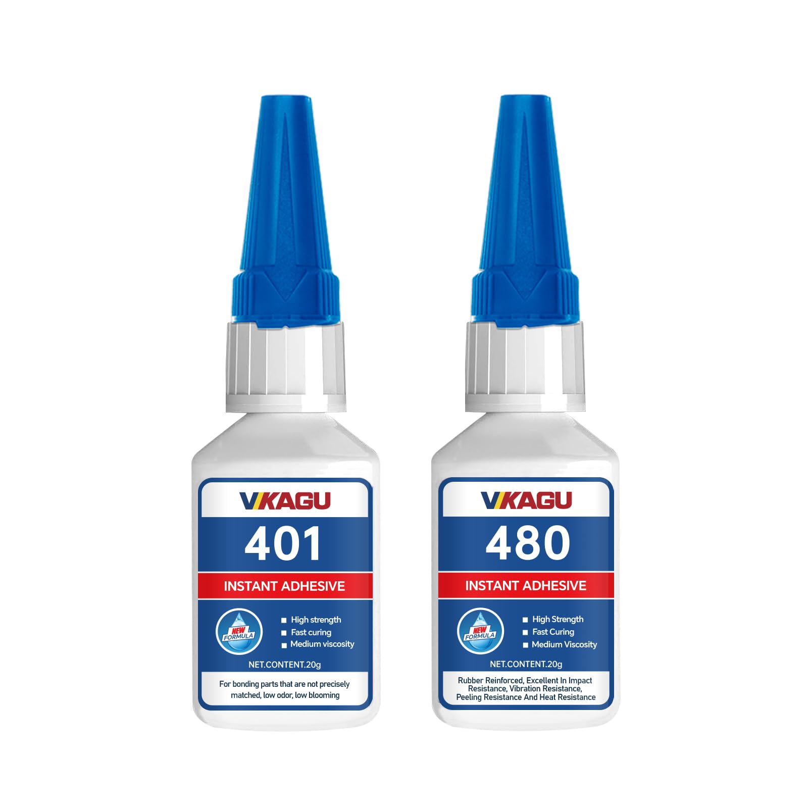 - [Headline] Upgrade Your Workshop with VIKAGU 401 Industrial Adhesive Whether you are a professional carpenter, a 3D printing enthusiast, or a home repair expert, you know that not all super glues are created equal. VIKAGU 401 is a premium Cyanoacrylate (CA) adhesive formulated to bridge the gap between industrial performance and daily usability. Why Choose VIKAGU 401? Professional Finish: The low-blooming formula prevents the "frosting effect," keeping your black plastic repairs and intricate models looking professional. Optimized Viscosity: It fills gaps up to 0.1mm while maintaining fast wicking action. User-Friendly: Low odor means a more comfortable working environment during extended use. Technical Specifications: Type: Alkoxy-Ethyl Cyanoacrylate (401 Grade) Viscosity: Medium (Similar to motor oil or syrup) Set Time: 10-30 seconds (depending on material) Full Cure: 24 Hours Color: Clear / Transparent Application Guide for Best Results: 1. Clean: Ensure surfaces are completely dry and free from oil, dust, or grease. 2. Apply: Apply a small amount to one surface only (one drop per square inch is usually sufficient). Less is more! 3. Press: Bring parts together immediately and hold firmly for 15-30 seconds. 4. Store: Wipe the nozzle tip, replace the cap tightly, and store in a cool, dry place (refrigerator recommended for long-term storage). Package Includes: 2 x 20g Bottles of VIKAGU 401 Instant Adhesive 2 x Precision Applicator Nozzles