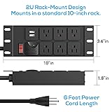 - 10" Rack PDU-2U (6Outlets) ,10-inch Mini Rack Power Distribution Unit with 1020J Surge Protection (125V/15A 14AWG 6ft Cable)and 2 USB-A, Rack Mount Power Strips for10" Mini Server rack accessories ,Network Cabinets/Rack/Self