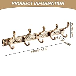 - Description: Enhance your home organization with our vintage-style wall-mounted coat rack that combines classic design with modern functionality. This elegant 5-hook rack features a beautiful vintage finish crafted from premium aerospace aluminum, offering both durability and aesthetic appeal. The generous 20.4-inch width provides ample space for hanging multiple items while maintaining a streamlined profile that complements various decor styles. Perfect for bathrooms, bedrooms, entryways, and living spaces, this versatile rack handles everything from towels and robes to coats, bags, and accessories. The aerospace aluminum construction ensures resistance to rust and corrosion, making it ideal for humid environments. Each of the five hooks is strategically spaced to crowding while maximizing hanging capacity. The substantial 520g weight provides stability and quality feel, while the vintage finish adds a touch of timeless elegance to your walls. Installation is straightforward with included hardware, making this rack a practical and stylish addition to any room in your home. Features:. Coat Rack Wall Mount. -Color: Brown. -Material: Space Aluminum. -Size: about 51.8*12*8.5cm/20.4*4.7*3.3inch. -Weight: 520g. Note: Manual measurement, please allow slight errors on size. The colors may exist slight difference due to different screens. Package Including 1 x Coat Rack Wall Mount