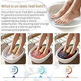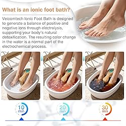 - Professional Wellness Starts at Home with VeicomtechIn today's world where stress and fatigue accumulate, the Veicomtech ionic foot bath detox machine offers a convenient and effective solution for relaxation. We recommend using this foot detox machine twice a week to help rejuvenate your body and refresh your cells.Key FeaturesMagnetic Safety Array: Patented magnetic design prevents wires from contacting water, ensuring quick setup and peace of mind for your foot detox bath.Multi-Functional Salt Kit: Includes three professional salts for relaxation, skin nourishment, and muscle relief, plus lemon acid descaler.Large Basin with Removable Liner: Spacious basin with a detachable inner liner for easy cleaning, perfect for family use.Benefits of Regular UseWith consistent use, this ionic foot bath detox machine helps:Enhance the body's natural purification process.Support metabolism and improve circulation.Promote better sleep quality and relieve daily stress.Technical SpecificationsPower: 24WVoltage: AC 110VOperation: One-touch start with 30-minute auto-timer.The Ideal ChoiceWhether for personal wellness, family sharing, or as a thoughtful holiday gift, this ionic foot detox machine delivers a professional spa-like experience at home. Its elegant design and practical features transform self-care into a daily luxury. This ion foot bath detox machine is not just a detox machine, but a complete detox foot spa system that brings the benefits of ion detox foot bath technology into your home. Experience the power of desintoxicacion ionica with our advanced ionic detox foot bath machine designed for modern lifestyles.