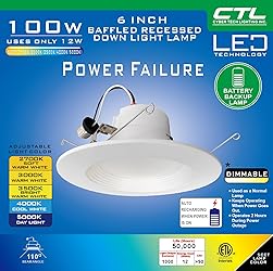 - These Emergency Recessed Lights have a built-in emergency backup battery that provides power for at least 120 minutes in the event of a power outage. It switches to Battery Power on its Own. These LED recessed lights have a range of color temperatures to meet your needs, including 2700K, 3000K, 3500K, 4000K, and 5000K. The emergency Battery works best without dimmer switch and it May not operate on all Dimmers. With 1000 lumens of brightness, these Emergency downlights provides exceptional illumination for any need. You can count on long-lasting, efficient LEDs with a life expectancy of 50,000 hours. The Recessed Light is the best choice for you to renovate or decorate your home and improve home lighting, fits Most Standard 6" Recess Cans. You can install it in various rooms such as living room, kitchen, bedroom, corridor or bathroom.