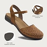 Material: Women's closed toe sandals are made with smooth leather upper and TPR non-slip soles, providing stability and comfort with every step. Design: The flats shoes feature a round toe and adjustable ankle strap with hook and loop closure, providing a secure and customizable fit for all-day wear. Comfort: Women flat sandals feature a soft memory foam cork footbed that provides superior comfort and arch support to balance the foot's strength structure and reduce heel and back pain. Style: Classic women's arch support sandals can with jeans, dresses, and casual outfits for a trendy look, or paired with more formal attire for a sophisticated touch. Occasion: Cute elegant women's closed toe shoes, perfect for beach, shopping, vacation, gardening, dating, work, indoor and outdoor activities, etc.