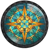 Artinhand 4 Pack Stained Glass Retro Compass Cabinet Knobs Round Drawer Pulls Black Dresser Knob Cupboard Door Handles Hardware for Kitchen Bathroom Cabinets