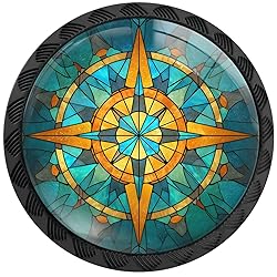 - Feature: -These exquisite Stained Glass Retro Compass cabinet knobs are beautifully designed, featuring a compass-inspired geometric pattern with warm orange and cool blue glass-style layers, creating a vintage, artistic, and adventurous aesthetic. -This handle perfectly match any kitchen cabinets, furniture doors, cabinets, desk drawers, wardrobe drawers, shelf racks, dresser and more! -The handles for dresser drawers surface is smooth, comfortable and perfect. 4PCS knobs for kitchen cabinets, each knob is equipped with two matching screws. Simple appearance, modern style, easy to install and clean. -The smooth surface has no corners and is very friendly for children. Precautions: -Please check the thickness of the drawer before ordering. -If you have any questions, please do not hesitate to contact us by email immediately, we will solve all your worries as soon as possible. Parameter: Product Name: Themed Drawer Knobs (4PCS) Material: ABS + Crystal Glass Accessories: 5 break away screws + 5 short screws Size: Knob: 1.37 x 1.1 x 0.66 in; Screw: 0.31 x 1.8in/0.31 x 1in