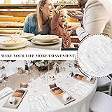 - Features: The plasticware is disposable, making cleanup a breeze. After use, simply toss the utensils and napkins into the bin, saving you time and effort in washing and drying. This feature is convenient for large gatherings and events where convenience is key. The disposable silverware set is designed with proper size. The knives measure about 6.61 x 0.87 inches/ 168 x 22 mm, forks measure about 6.1 x 0.98 inches/ 155 x 25 mm, and spoons measure about 5.83 x 1.3 inches/ 148 x 33 mm. The proper size ensures a comfortable grip and smooth eating experience for your guests. Specifications: Main materials: PP plastic, paper Color: white Size: Knives: about 6.61 x 0.87 inches/ 168 x 22 mm Forks: about 6.1 x 0.98 inches/ 155 x 25 mm Spoons: about 5.83 x 1.3 inches/ 148 x 33 mm Napkins: about 8.66 x 8.66 inches/ 220 x 220 mm when unfold Package includes: 200 x Knives 200 x Forks 200 x Spoons 200 x Napkins Notes: Manual measurement, please allow slight errors on size. The color may exist a slight difference due to different screen displays. Pointed items are included, it is recommended to keep them away from kids